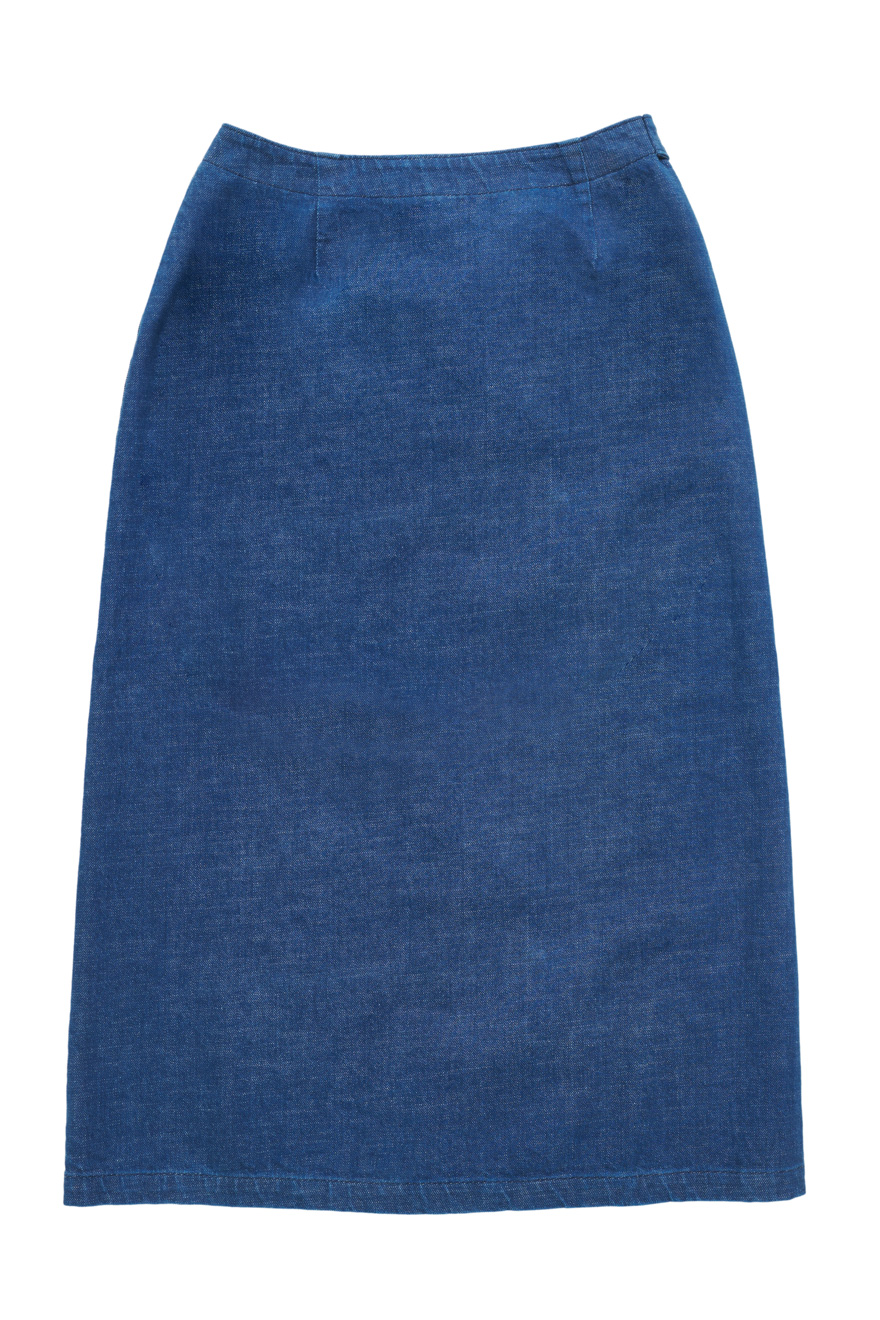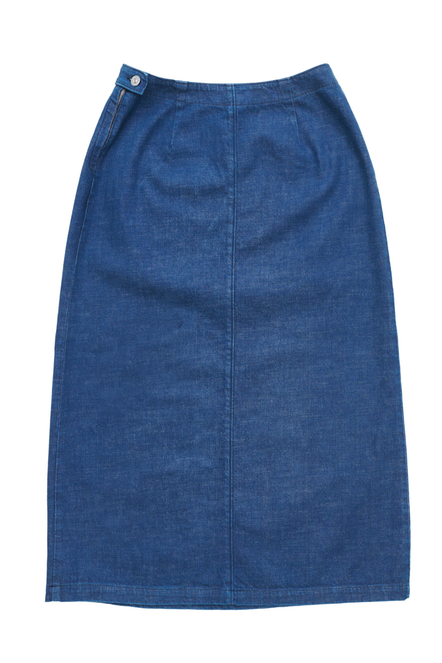 This pencil skirt combines timeless elegance with sustainable innovation. Featuring a genderless fit, it redefines a classic silhouette with a modern twist. The sleek, under-the-knee design ensures style and comfort, perfect for both office wear and casual outings. Available in Rinsed Indigo and Camo Green, it effortlessly complements any look.
